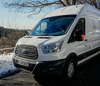 Die Grundlage des Vans bildet ein Ford Transit L4 H3, Baujahr 2016 mit folgende Fahrzeugmerkmalen: Diesel, 150 PS, Schaltgetriebe, Tempomat, Multifunktionslenkrad, Freisprecheinrichtung, Einparkhilfe vorne und hinten, 3-Sitzer, Abbiegelicht, Tempolimitwarner, Motor mit 20.000 km und Frontscheibenheizung. Auch der Fahrkomfort kommt daher nicht zu kurz.