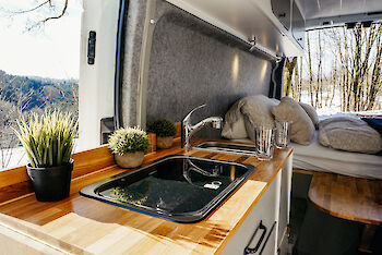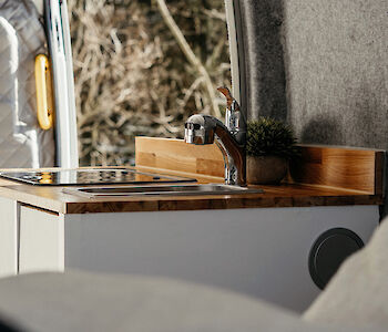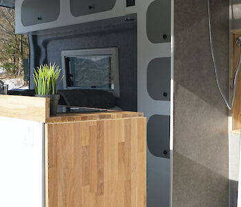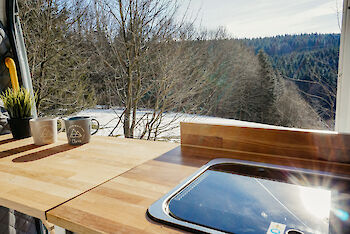 Im Winterurlaub heizt die Standheizung den Van auf und es ist schön kuschelig warm im Van. Auch die Dusche musst Du nicht mit kaltem Wasser über Dich ergehen lassen, die Heizung erhitzt auch das Wasser und Du kannst angenehm warm duschen.
