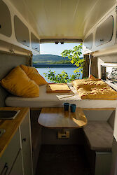 Mit unserem super geräumigen Ford Transit L4 H3 steht dem Abenteuerurlaub nichts mehr im Wege. Ob Berge oder Strand, Sommer oder Winter, alleine oder zu zweit, Relax-Urlaub oder Action-Urlaub ... mit dem Van Vince kannst Du Deinen Urlaub so gestalten, wie Du es möchtest. Durch die integrierte Innen-Dusche, das Kochfeld im Van und sehr geräumigem Platz, kannst Du nicht nur in der warmen Jahreszeit mit dem Van verreisen, sondern dank integrierter Dieselstandheizung auch im Winter. Und das ohne auf Außenstrom angewiesen zu sein. Im Sommer kannst Du überall dort stehen bleiben, wo es Dir gefällt.
