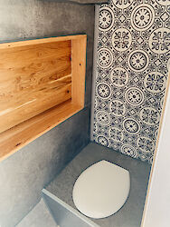 - Trockentrenntoilette (keine Chemietoilette)